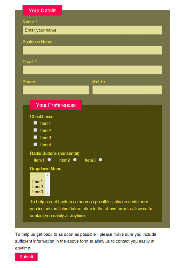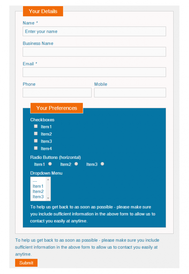 Order Pro Use Order Pro template to save your audience’s time when they order. The template collects information about an order from your users with ease. It is also easy to customize as you require. Included in this template are the following fields: • Title • Tagline • Drop-down menu (for selecting a single option)…