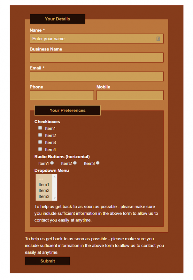 Golden Brown Never a frown with this distinctive, brown and gold style, Golden Brown will blend in well to any website with a similar color scheme but also stand out and look great on a light website with its strong brown hues and detail.