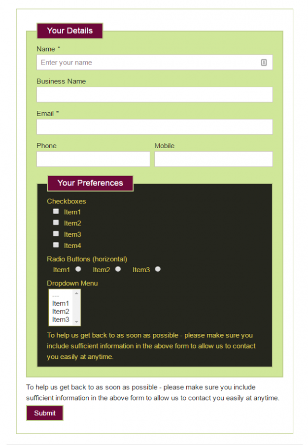 Bacall Bacall is a classy & cool color combination that can be used to create eye catching forms for your website.