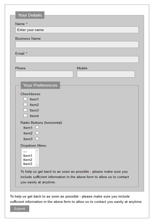 Grid Pro The CF7 Skins Ready Add-on is required for displaying multiple fields per line as shown. The CF7 Skins Ready Bundle includes CF7 Skins Pro + CF7 Skins Ready. Build your form in a strict grid using Grid Pro. You can control the size and position of all fields within the grid. Included in…