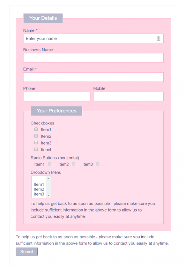 Strawberry Strawberry is a soft style that will add a delicate touch to your forms. It uses pastel colors which will blend into many themes following a similar color scheme.