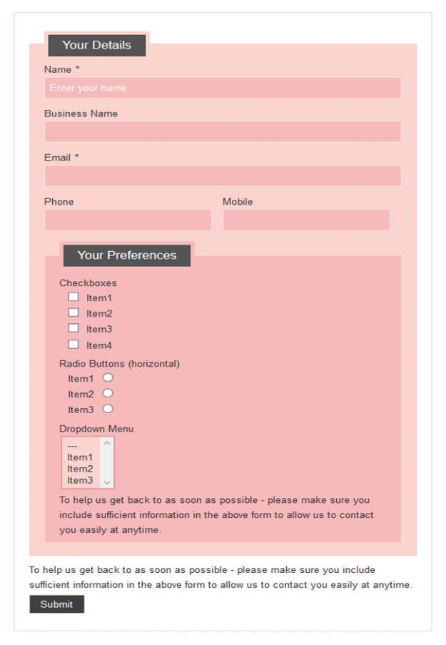 Berry Delight Berry Delight is likely to fit well in websites with softer colors, especially those which follow its peachy-pink color scheme. Use this style to create eye catching forms for any website.